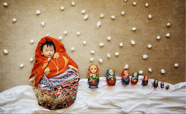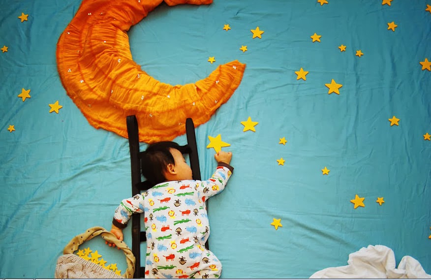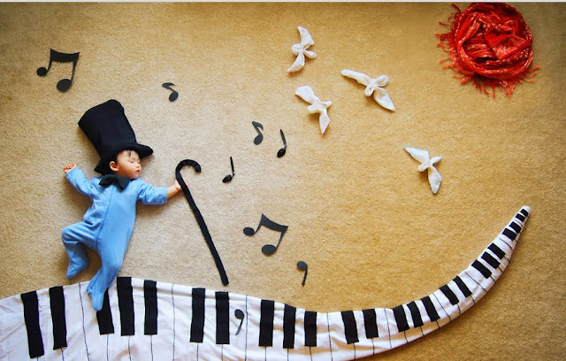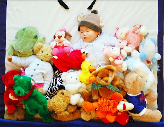Gaya baby tidur dan background yang sangat comel